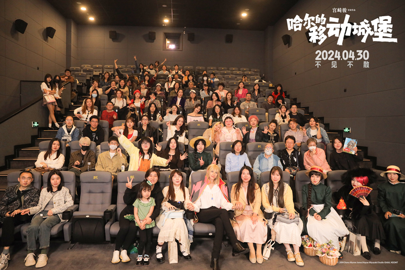 為了這次觀影活動,觀眾們重裝上陣裝扮成宮崎駿導演過往作品中的角色,無臉男、千尋、希達、魔女琪琪等人氣角色全部集結,也引得粉絲們排隊合影打卡。有觀眾表示,在《哈爾的移動城堡》的首映禮中看到這麼多角色,感覺特別美好。