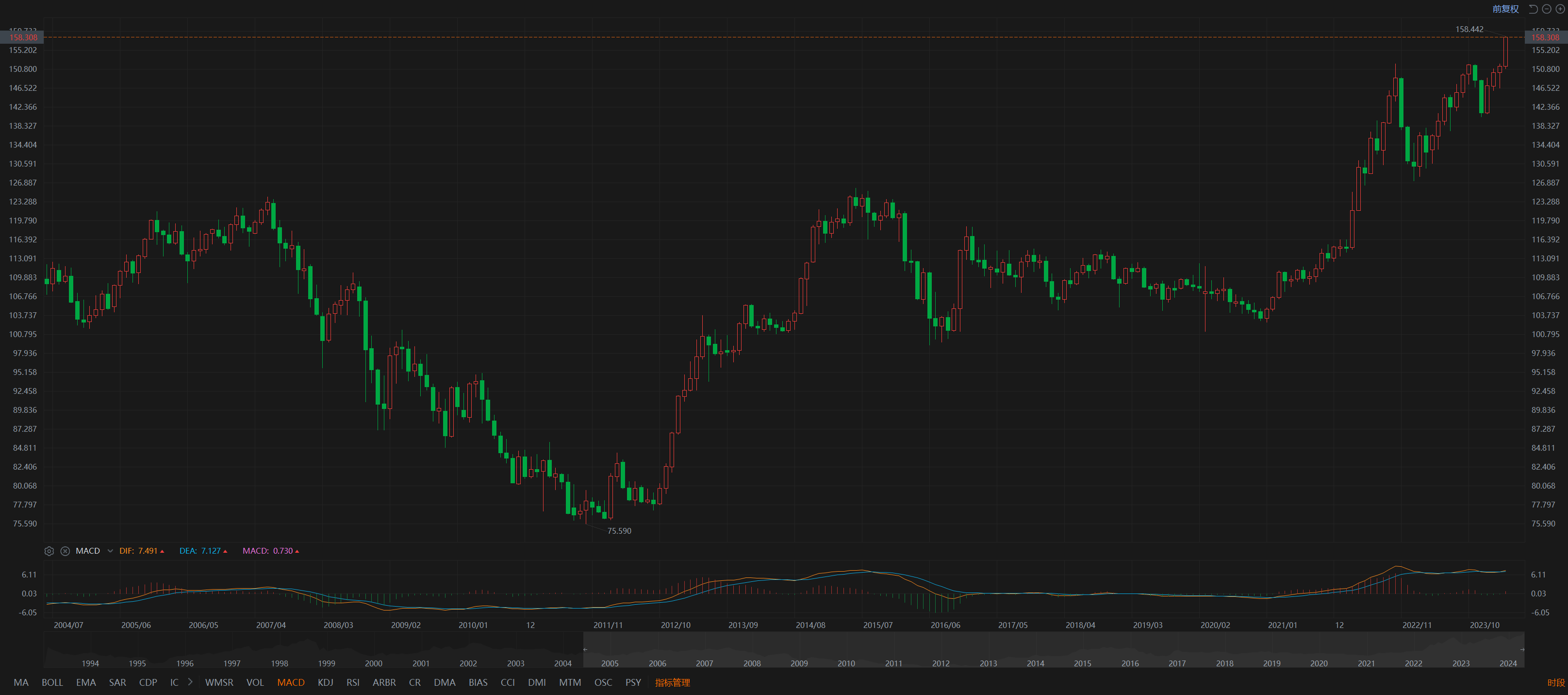 日本央行此話一出,被市場普遍認為是日本央行對匯率躺平的信號,當日日元匯率持續走低,美元兑日元匯率一路突破156,157,158三道整數關口,報收158.308,當天貶值幅度達到1.71%,再創34年來匯率新低。