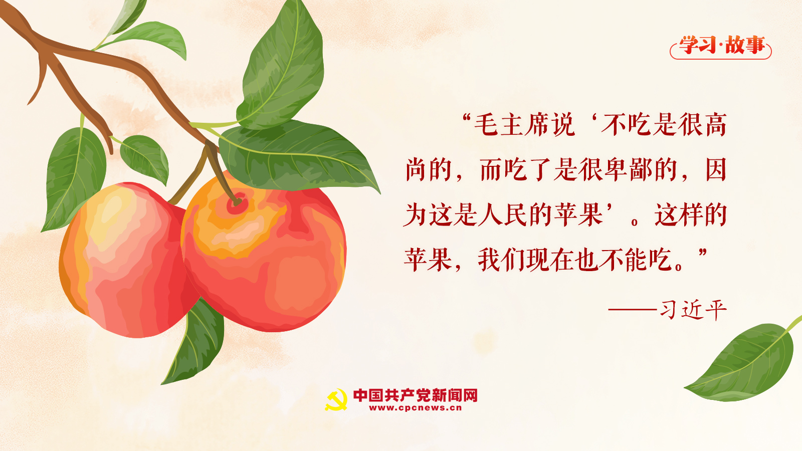 “毛主席説‘不吃是很高尚的,而吃了是很卑鄙的,因為這是人民的蘋果’。這樣的蘋果,我們現在也不能吃。”習近平總書記意味深長地説。