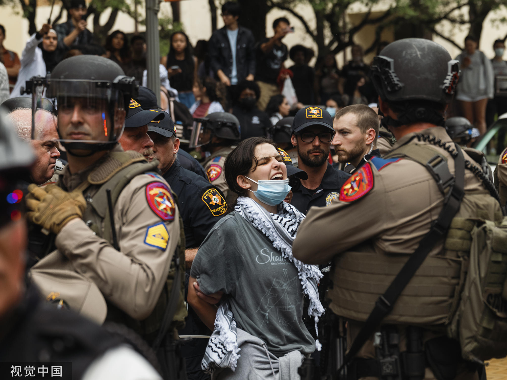當地時間24日,得克薩斯大學奧斯汀分校大批示威學生被警察逮捕。圖自視覺中國