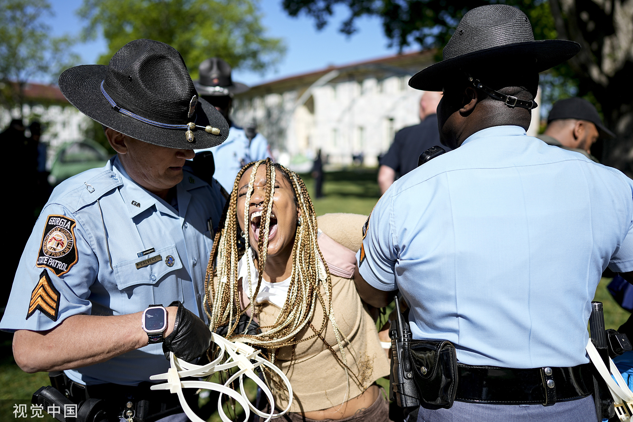 埃默裏大學師生控訴警察暴力逮捕示威學生,圖自視覺中國