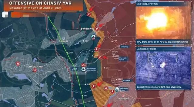 俄軍在頓巴斯前線持續猛攻,圖為恰西夫亞爾地區戰情(圖片來源:網絡)