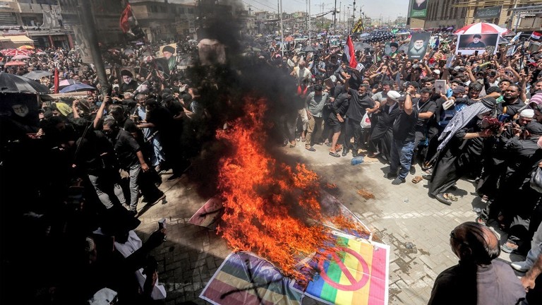 半島電視台稱,自去年以來,伊拉克主要政黨均加大了對同性戀等羣體的批評,什葉派穆斯林政黨時常在抗議活動中焚燒“LGBT(性少數羣體)活動人士”的彩虹旗幟。
