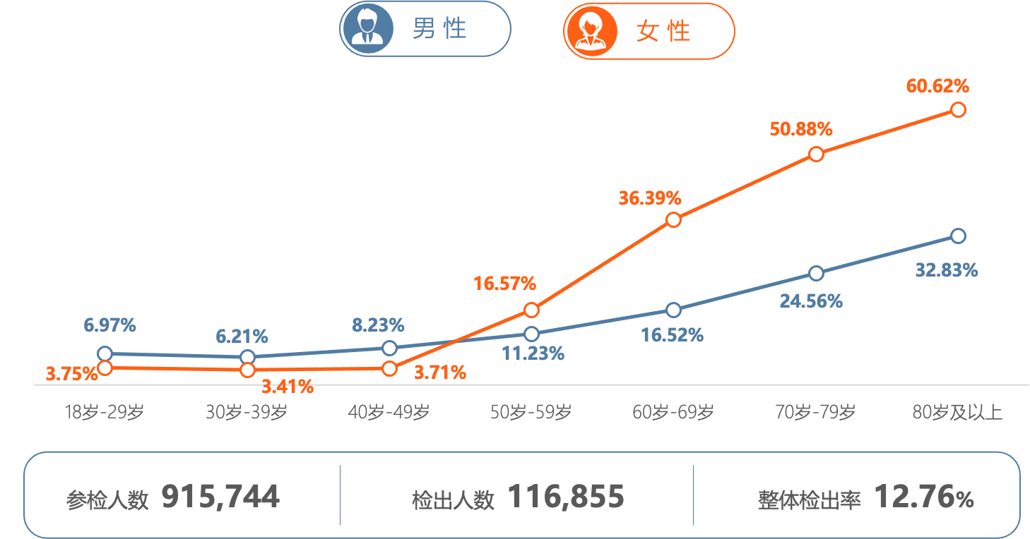 無論是骨量減少,還是骨質疏鬆症,在40歲都呈現逐漸增高趨勢,愛康建議:40歲以上人羣定期進行骨骼疾病篩查,做到早預防、早診斷、早治療。