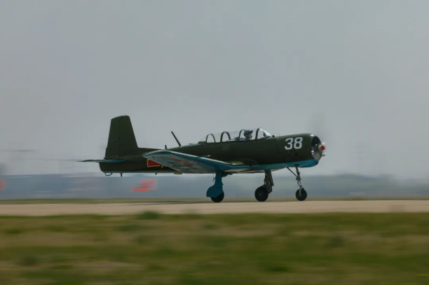 2024年4月25日,我國首批艦載機女飛行學員首次單飛。這是飛行學員正在着陸。(于濤 攝)
