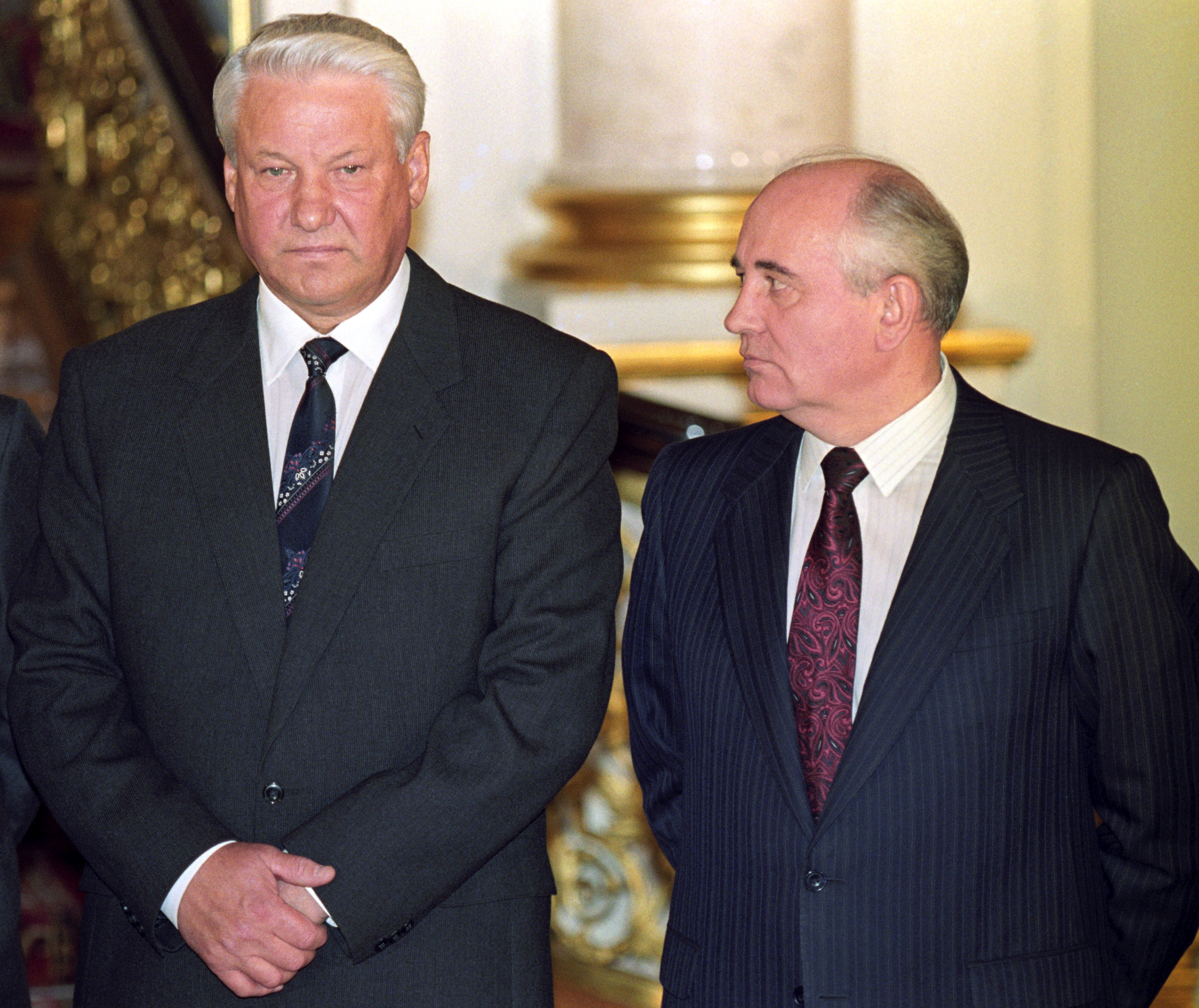俄羅斯首任總統葉利欽(左)與蘇聯最後一任領導人戈爾巴喬夫(右)圖自澎湃影像