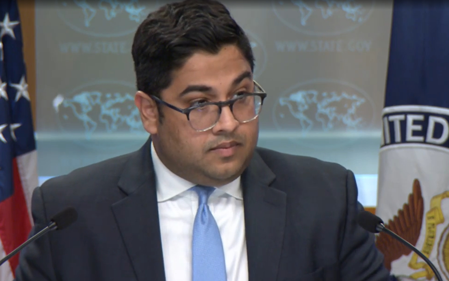 美國國務院發言人帕特爾29日發表講話,視頻截圖