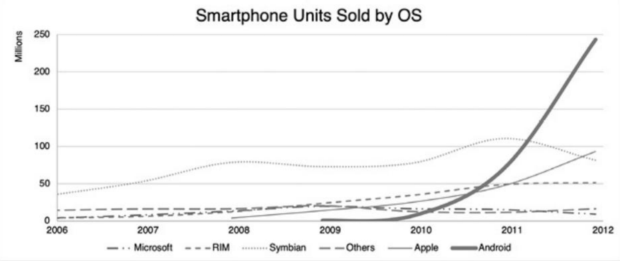 如假包換的“iPhone時刻”之後,安卓系統之所以能夠發揮點石成金的作用,改變終端市場格局,原因正在於其針對操作系統這一當時智能手機普及擴散的核心“痛點”,為蘋果的競爭對手們提供了低成本、高質量、幾乎別無選擇的解決方案。