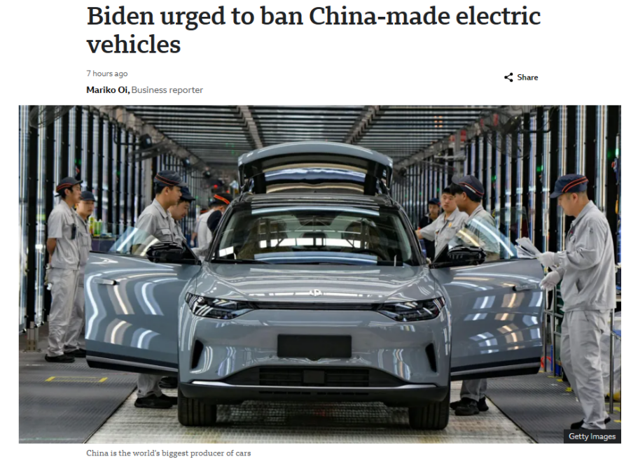 拜登政府出台政策限制中國新能源汽車 圖自紐約時報