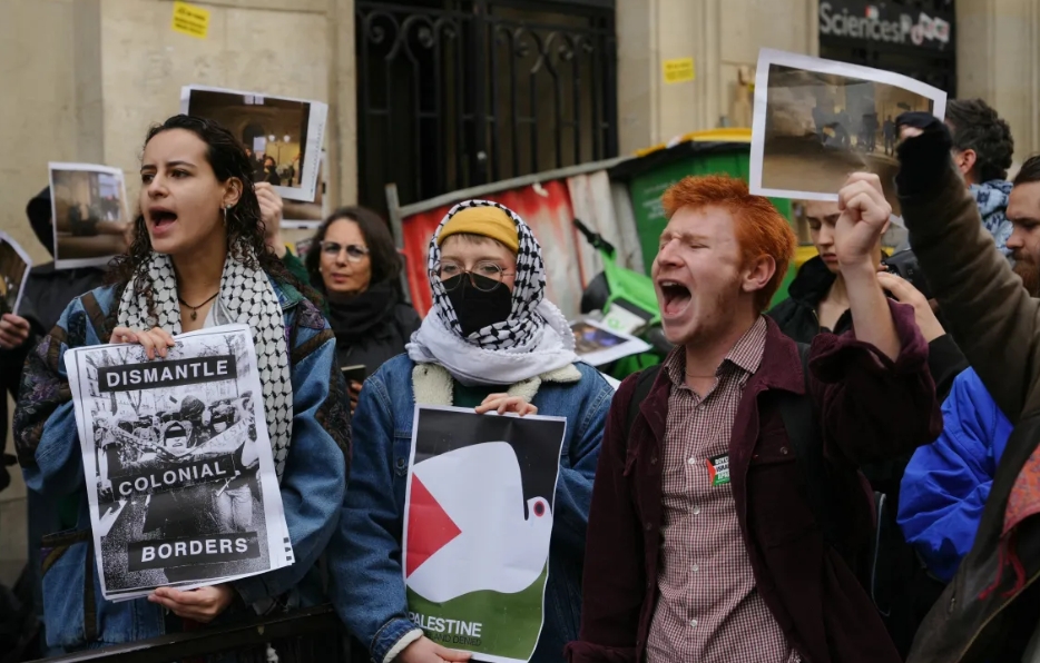 上週,法國知名學府巴黎政治學院爆發了數十名抗議學生參與的親巴勒斯坦示威活動,警方24日一度派出50餘名警力暴力清場。此後兩天,上百名學生再次聚集在一起舉行抗議,他們在學校大樓插上巴勒斯坦旗幟,要求校方明確譴責以色列,切斷同參與“加沙種族滅絕”的大學和企業的聯繫,結束對“挺巴”呼聲的鎮壓。
