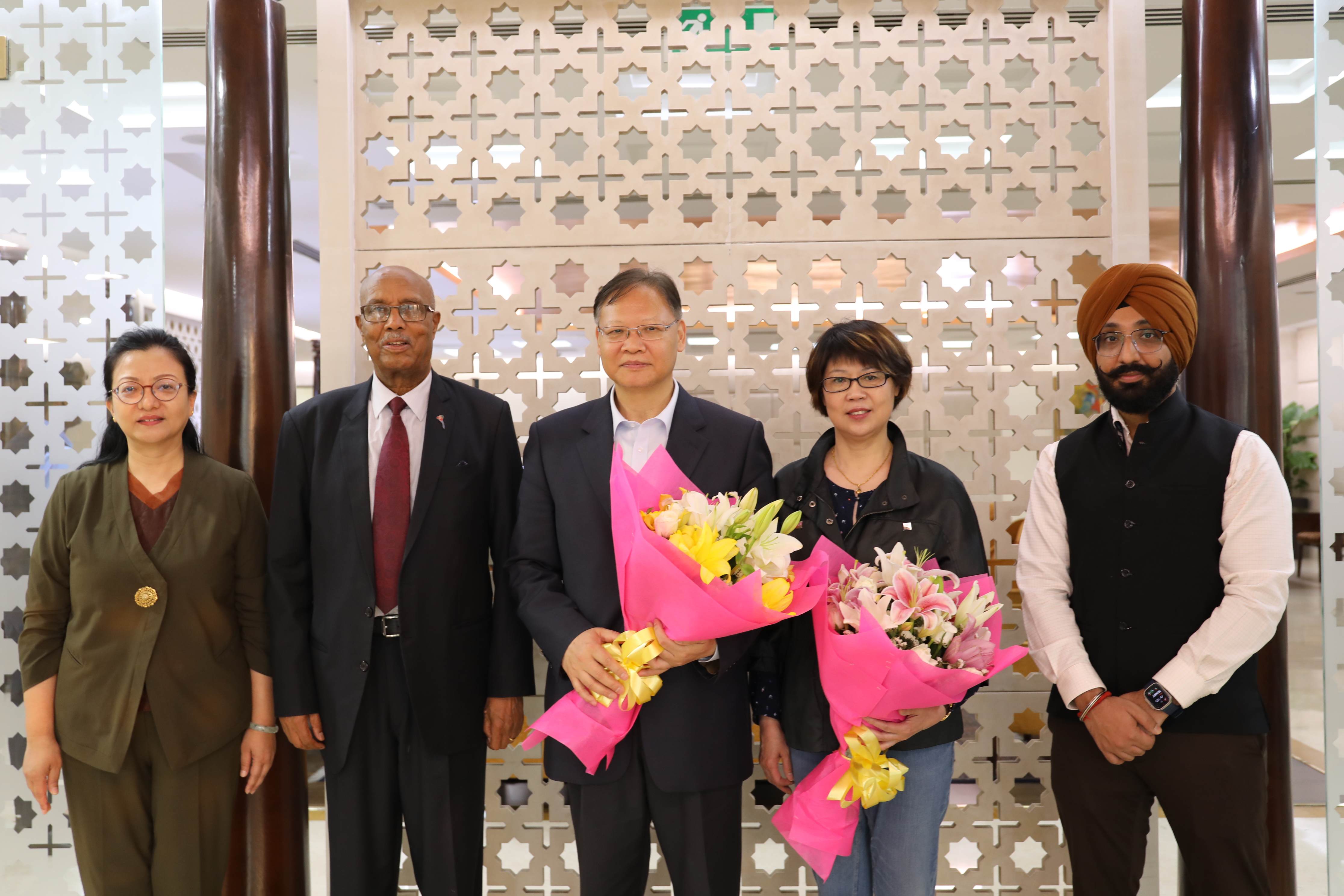 徐飛洪大使和夫人譚鬱秀抵達時,印度外交部禮賓司官員,駐印使團團長、厄立特里亞大使沃德瑪裏萊姆和中國駐印度大使館馬珈公使、王雷公使、陳建軍公參等到機場迎接。