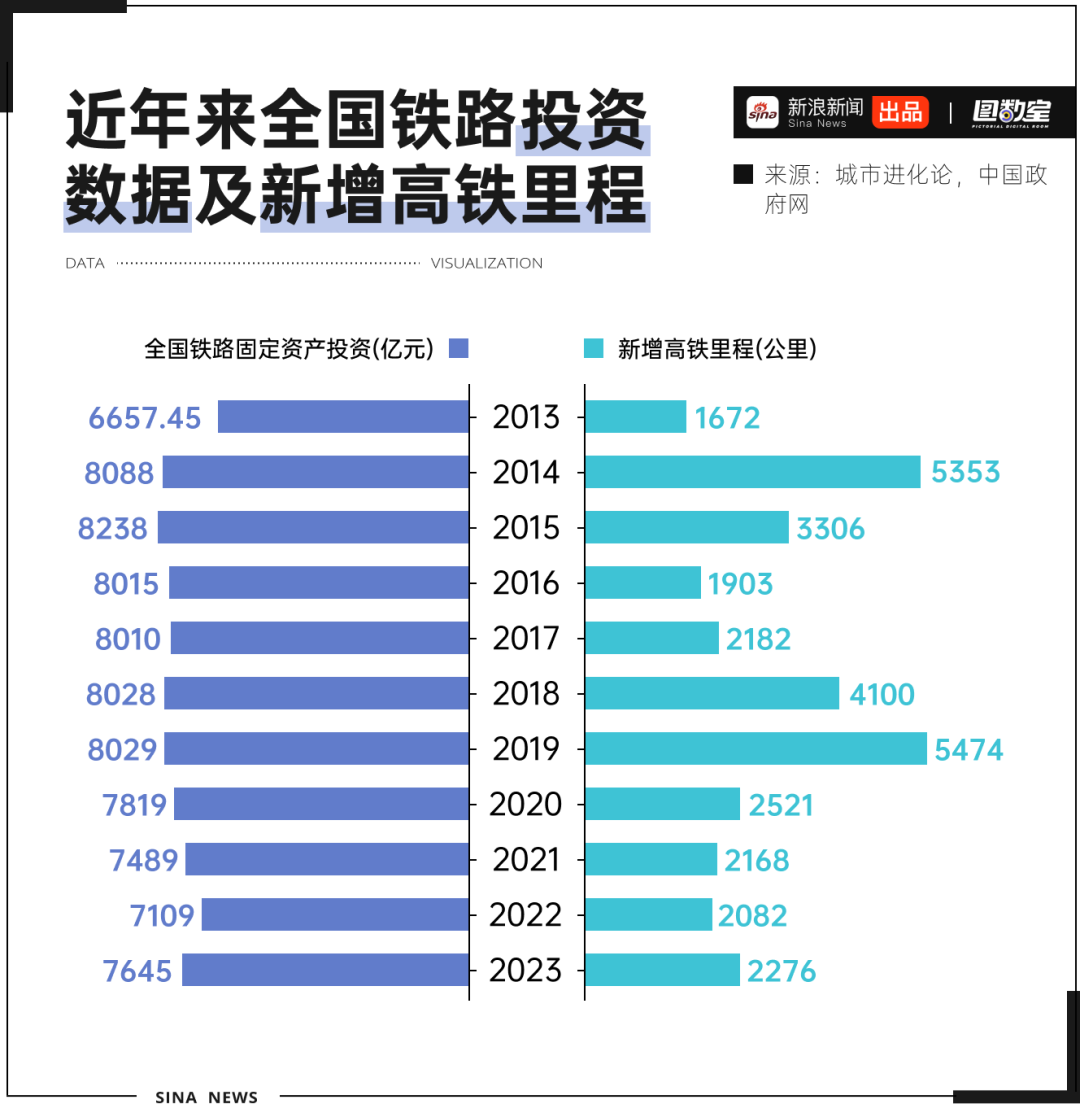 不斷擴大的高鐵版圖主要靠債務融資完成。去年全國鐵路完成固定資產投資7645億元,同比增長7.5%,成為2021年以來,也是十四五以來鐵路投資規模完成最多的一年。