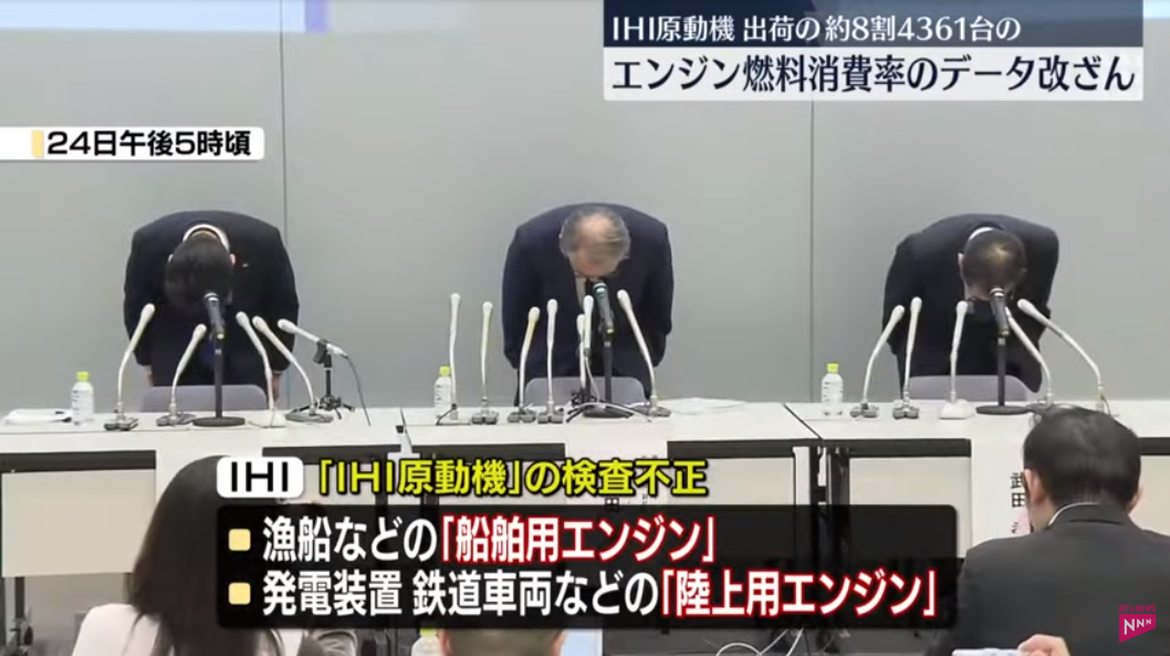 “重工企業”在日語中專指從事飛機、船舶、大型工業設備、巨大建築及發電等社會基礎方面的巨型設備的製造企業,業務內容關乎國計民生,由不得半點胡來。在2019年3月,IHI公司總裁剛在日本電視攝影機面前深深地低下頭,對企業過去三十餘年的造假行為表示追悔莫及,五年後的2024年4月24日,IHI副總裁重演這麼一出,讓人覺得這家百年老店多少有點病入膏肓了。