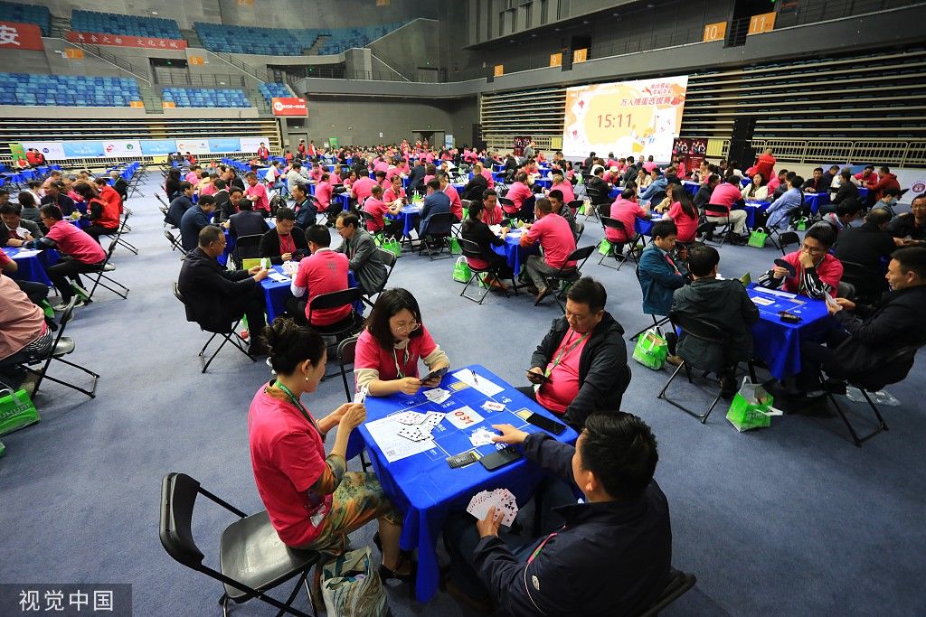 2024年5月3日,江蘇淮安市體育中心,10000名選手進行激烈角逐,晉級選手進入摜蛋撲克牌精英賽,與來自全國各地的選手爭奪冠軍。(圖源:視覺中國)