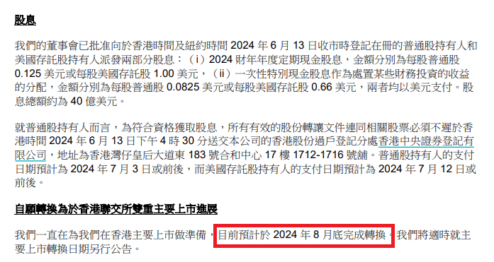 阿里宣佈,預計將於2024年8月底完成香港聯交所雙重主要上市的轉換。進入港股通,將成為阿里未來改善其估值的變量。阿里同時宣佈,派發2024財年股息,總額約為40億美元;此外,在2024財年,阿里回購了總額約125億美元的股票。派息和回購,未來有望吸引更多市場資金入場,進一步推動阿里的“反彈”。