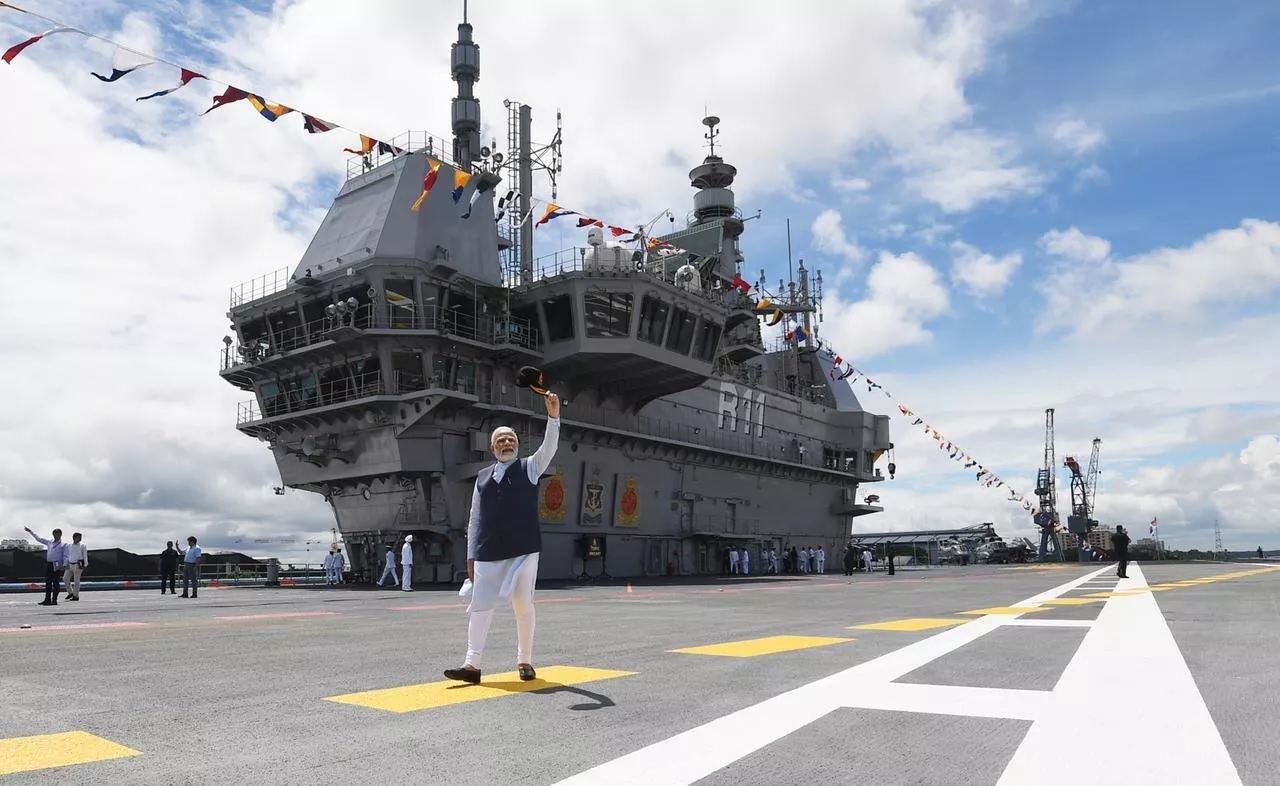 2022年9月2日,印度總理莫迪在“維克蘭特”號甲板上 圖片來源:社交媒體