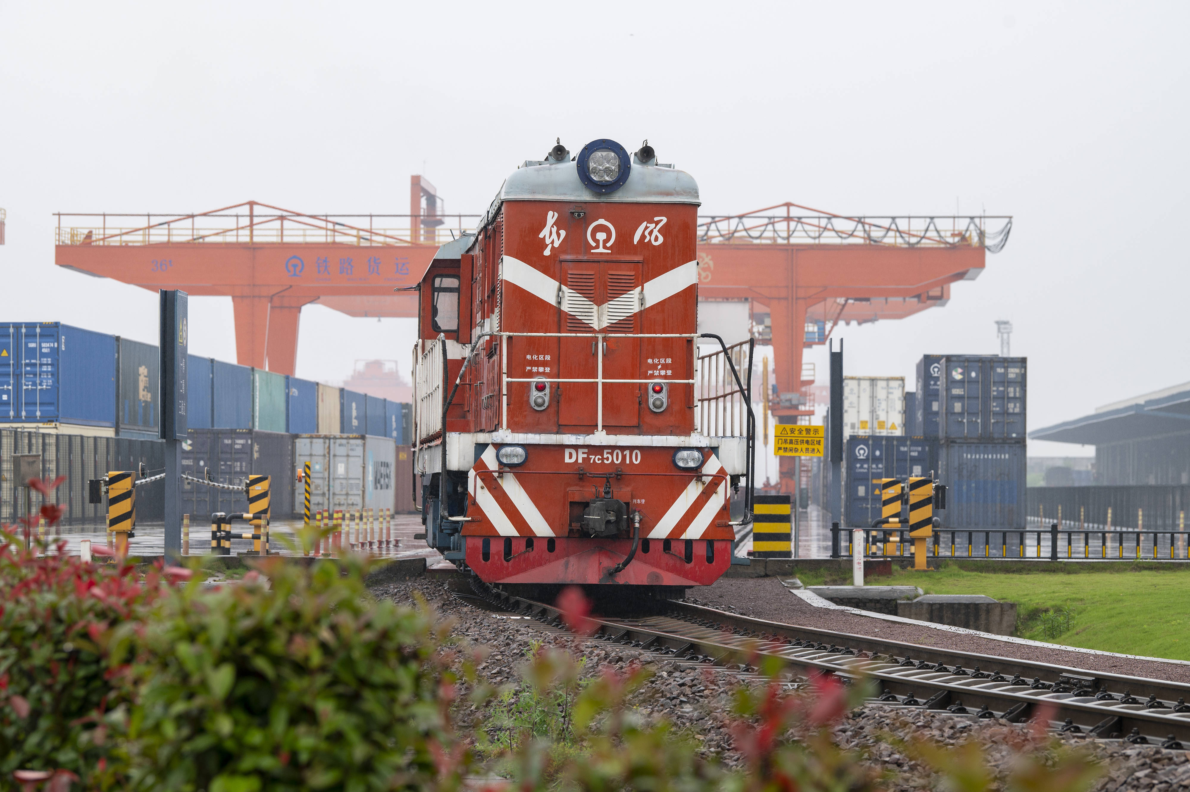 2024年5月5日,“五一”假期最後一天。在浙江省金華市金東區鐵路金華南站,一列滿載110標箱的中歐班列緩緩啓程駛往匈牙利。
