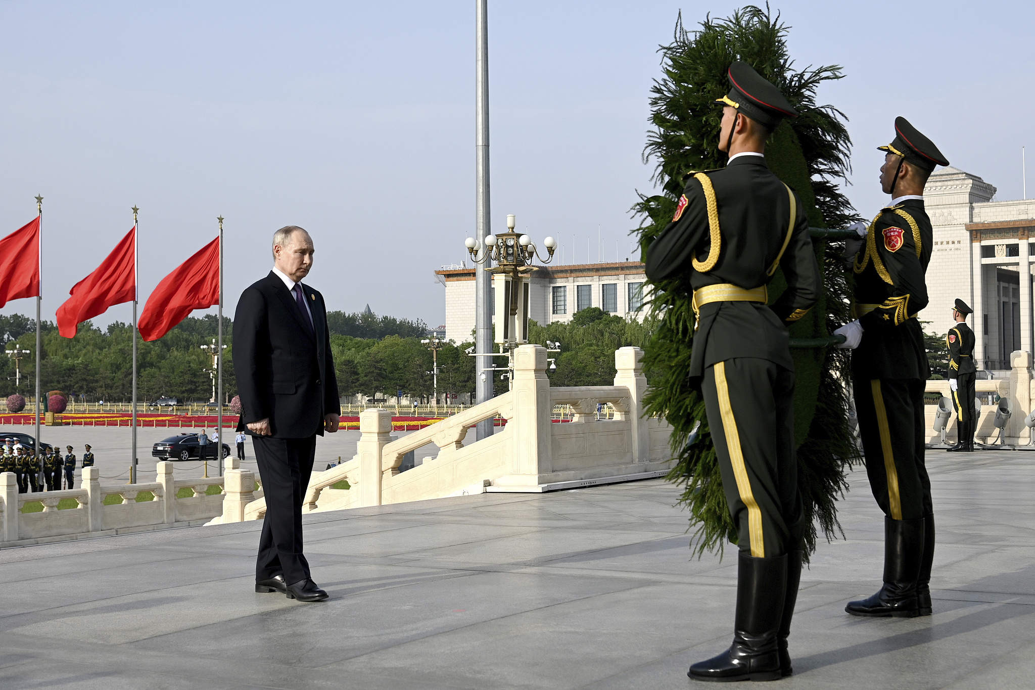 5月16日,北京,普京出席向人民英雄紀念碑敬獻花圈儀式 圖源:視覺中國
