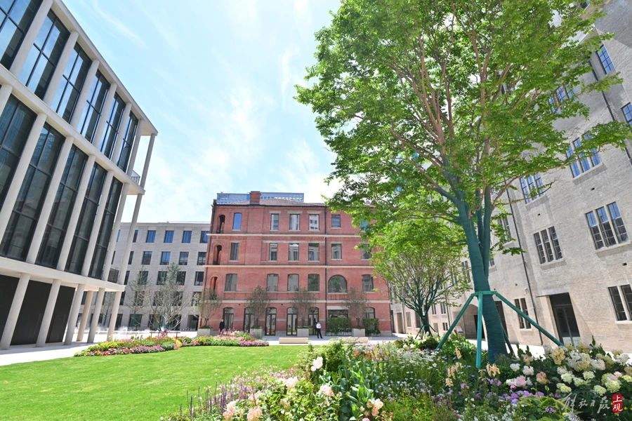 庭院內的歷史建築“小紅樓”,重達3800噸,經歷兩次整體平移,是上海目前重量最重的砌體結構建築平移工程。