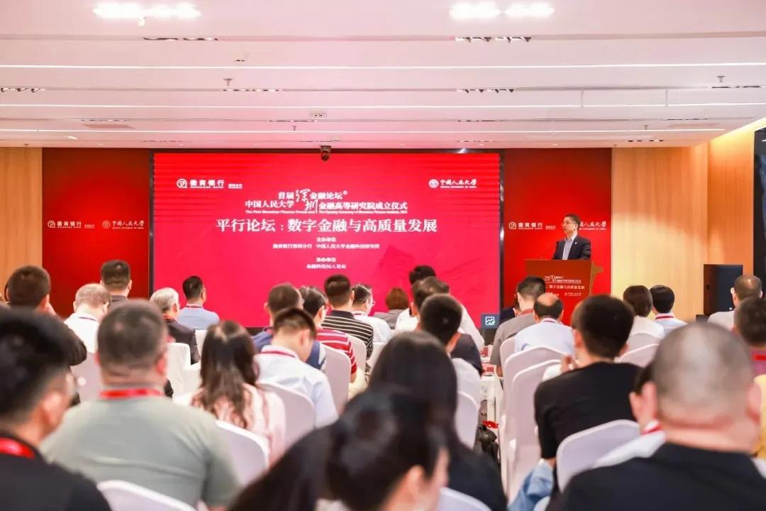 平行論壇六“數字金融與高質量發展”由徽商銀行股份有限公司深圳分行、中國人民大學金融科技研究所共同主辦,金融科技50人論壇協辦。中國人民大學國際貨幣研究所聯席所長、浙江大學國際聯合商學院院長賁聖林主持論壇。論壇上,中國人民大學財政金融學院黨委書記孫華玲,徽商銀行深圳分行黨委書記、行長洪偉作致辭。徽商銀行首席信息官王勇,第十四屆全國政協委員,深圳市工商聯主席、總商會會長,朗華集團董事長張春華,香港中文大學(深圳)高等金融研究院政策與實踐研究所所長、香港國際金融學會主席肖耿先後發表主題演講。在主題研討環節,清華大學金融科技研究院金融安全研究中心主任周道許,中國人民大學國際併購與投資研究所所長汪昌雲,國家金融與發展實驗室副主任楊濤,中國互聯網金融協會法規諮詢部(研究部)主任肖翔圍繞分論壇主題進行發言。中國人民大學國家金融研究院院長助理郭彪主持了主題研討環節。