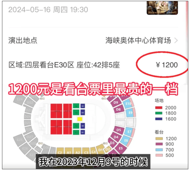 據多家媒體報道,一名網友花1200元買了周杰倫演唱會福州站門票,她説自己特意請假從浙江過來,想看清楚一點,選了看台票裏最貴的一檔。然而到現場後,她發現1200元的座位一整場“幾乎看不到周杰倫”,甚至連歌詞板和屏幕只能勉強看到,視角還不如部分700元和900元門票的觀眾。
