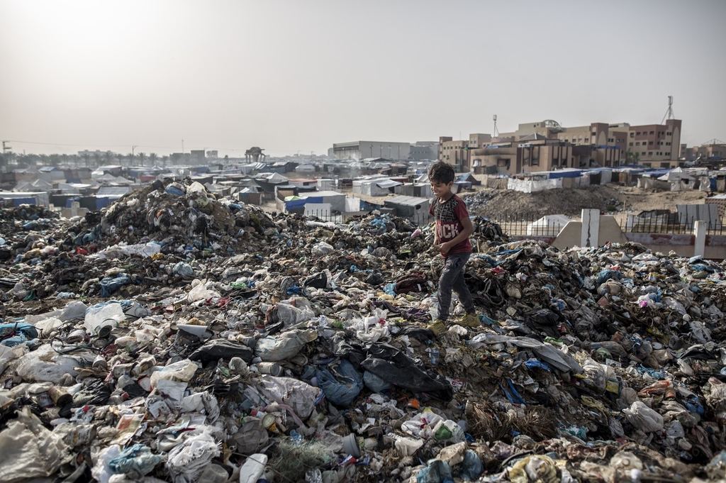 2024年5月20日,加沙地帶汗尤尼斯,巴以衝突持續,加沙地帶燃料短缺,巴勒斯坦人在垃圾堆內尋找木材、紙張等可燃物/IC Photo