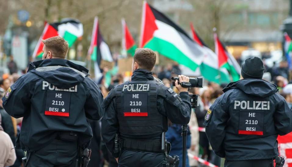 德國法蘭克福“挺巴”遊行示威,德國警方保持警戒/CNN