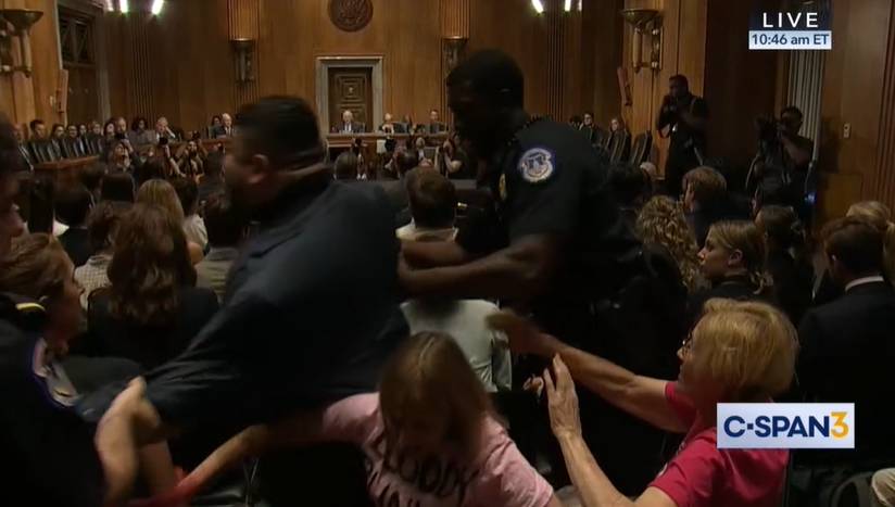 抗議活動組織方“粉紅準則”(CODEPINK)稱,該組織多名成員被捕,且多人因警察粗暴對待而受傷。據介紹,“粉紅準則”是美國女權主義組織,致力於支持和平與人權、結束美國戰爭和軍國主義。