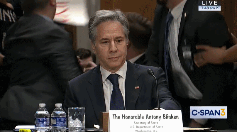 美抗議者大鬧聽證會,幾度打斷布林肯發言並痛斥其為“戰犯”