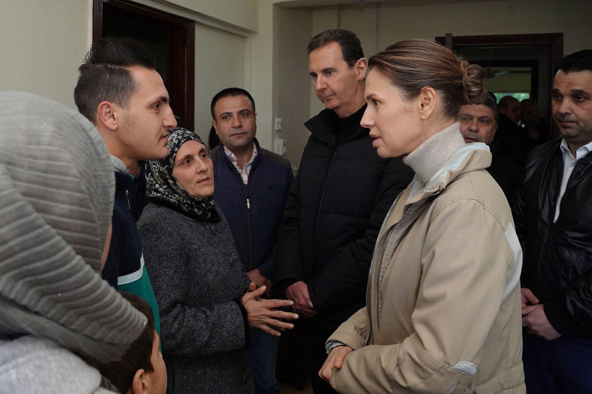 去年2月,敍利亞地震期間,阿薩德夫婦前往災區慰問受災民眾 圖源:視覺中國