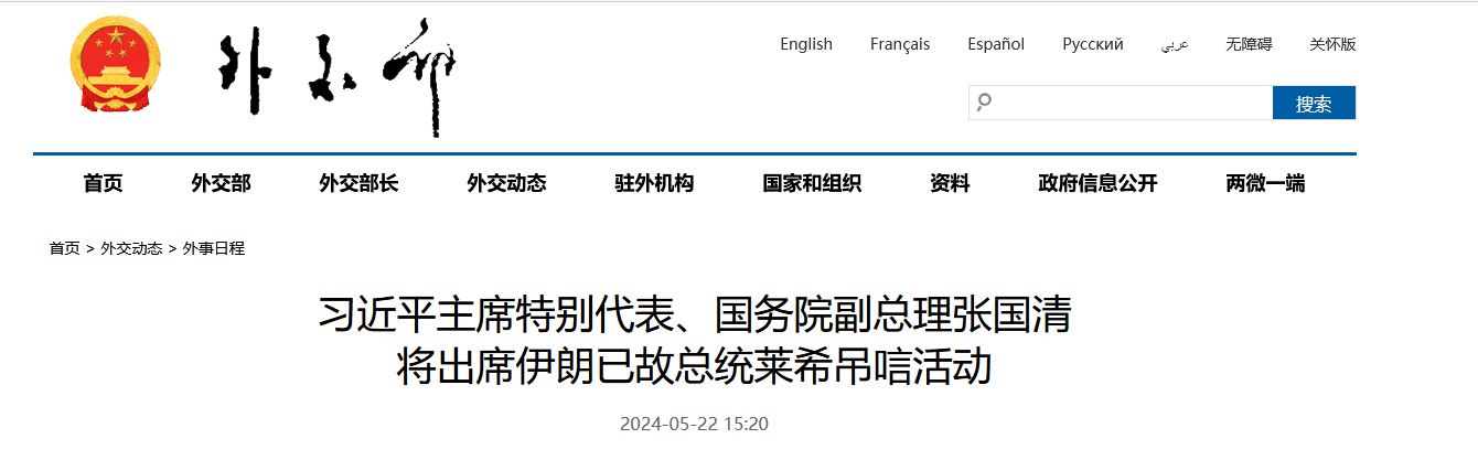 習近平主席特別代表、國務院副總理張國清 將出席伊朗已故總統萊希弔唁活動 guancha 2024-05-22 據外交部網站22日消息,外交部發言人汪文斌宣佈: 國家主席習近平特別代表、中共中央政治局委員、國務院副總理張國清將出席5月22日在德黑蘭舉行的伊朗已故總統萊希弔唁活動。