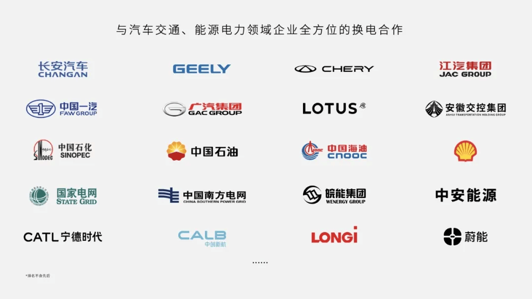 此外,蔚來還與中國石化、中國海油、殼牌、國家電網、南方電網等能源電力領域企業進行全方位換電合作。