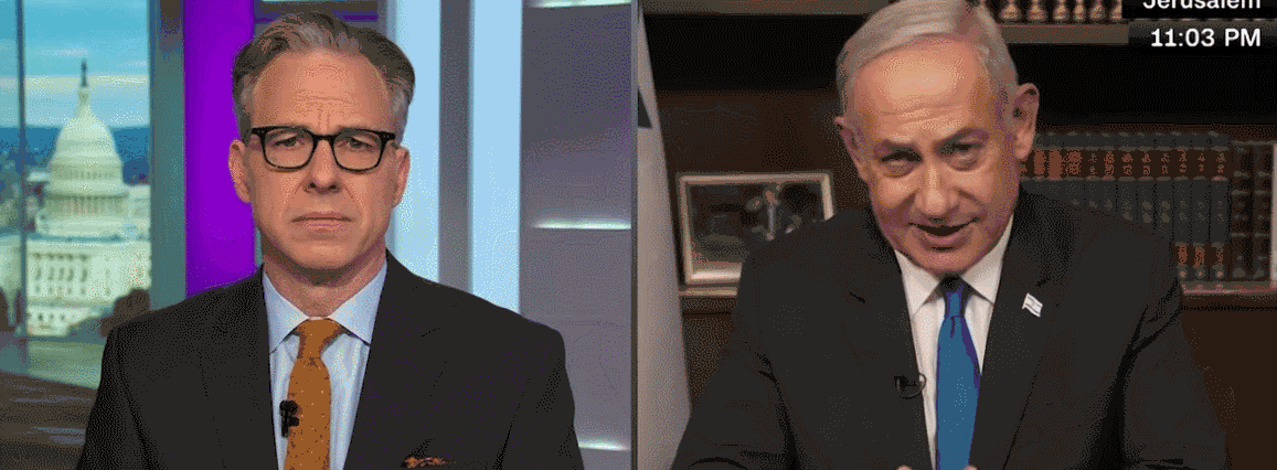 內塔尼亞胡“如數家珍”,另一邊負責訪問的CNN主持人傑克·塔珀(Jake Tapper)則先歪了歪頭,又張了張嘴,欲言又止……也許是考慮到時間有限——畢竟完整訪問視頻堪堪過14分鐘——塔珀最終沒有立即就此打斷他或就此追問更多。