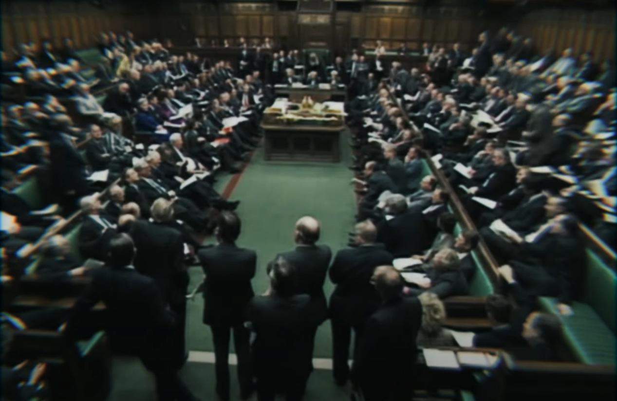 1990年英國議員們開會討論血污染醜聞事件 (圖源:ITV紀錄片《冷血》)