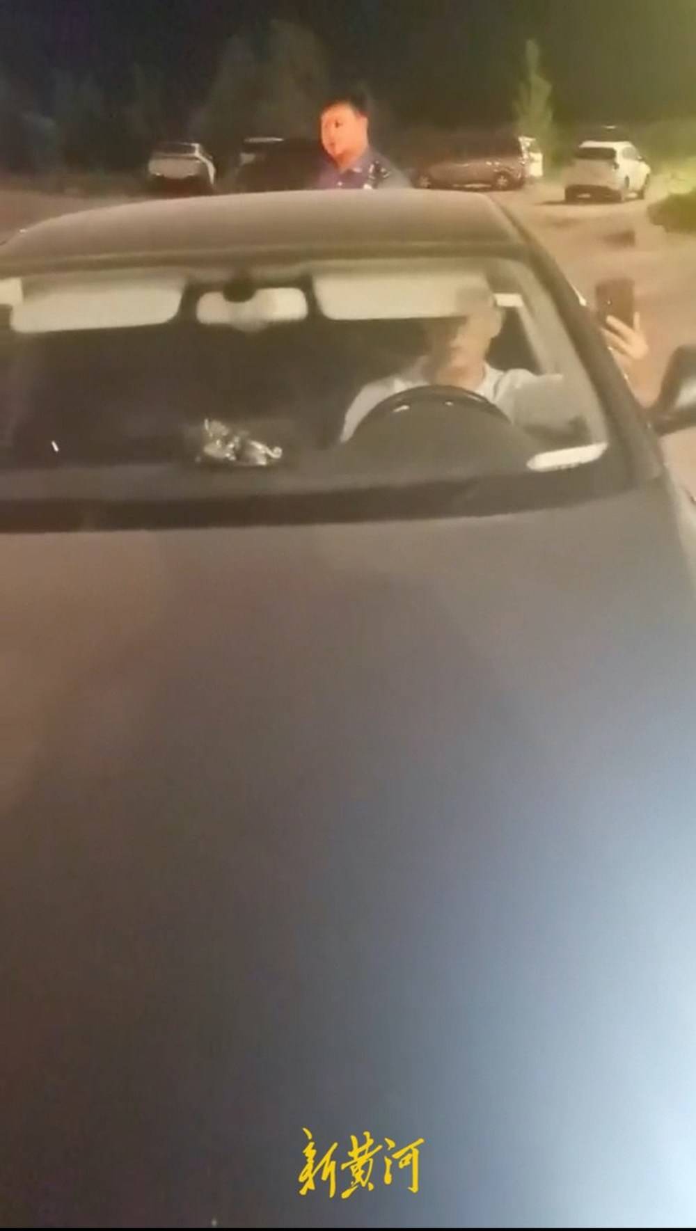 該視頻上顯示,私家車內一名男司機將手伸出窗外,朝向巡查人員作擺手狀。巡查人員詢問其身份,對方未給予回應。巡查人員當即通過對講機向當晚值班負責人彙報,稱“有一輛黑色眾泰汽車堵住了巡查車,渣土車已逃離現場”。
