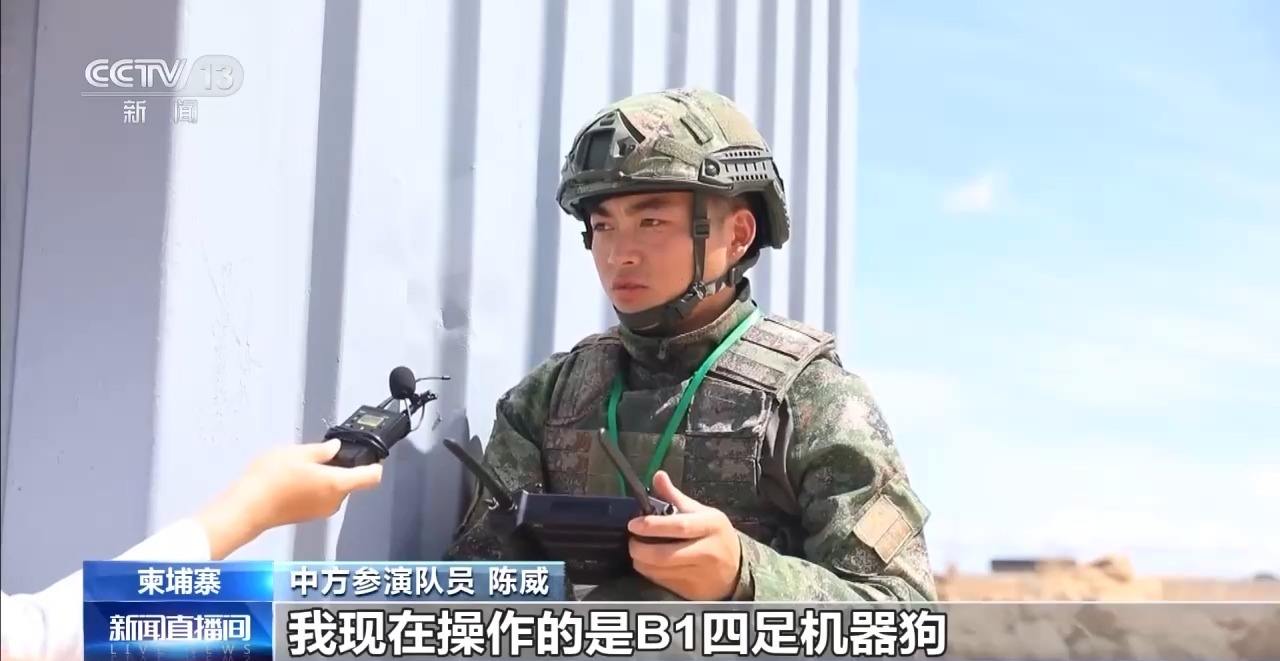 中方參演隊員 陳威:我現在操作的是B1四足機器狗,它可以在我們的訓練當中,代替我們的隊員先行進行偵察和發現敵人後火力打擊,是我們城市攻防作戰中的新成員。
