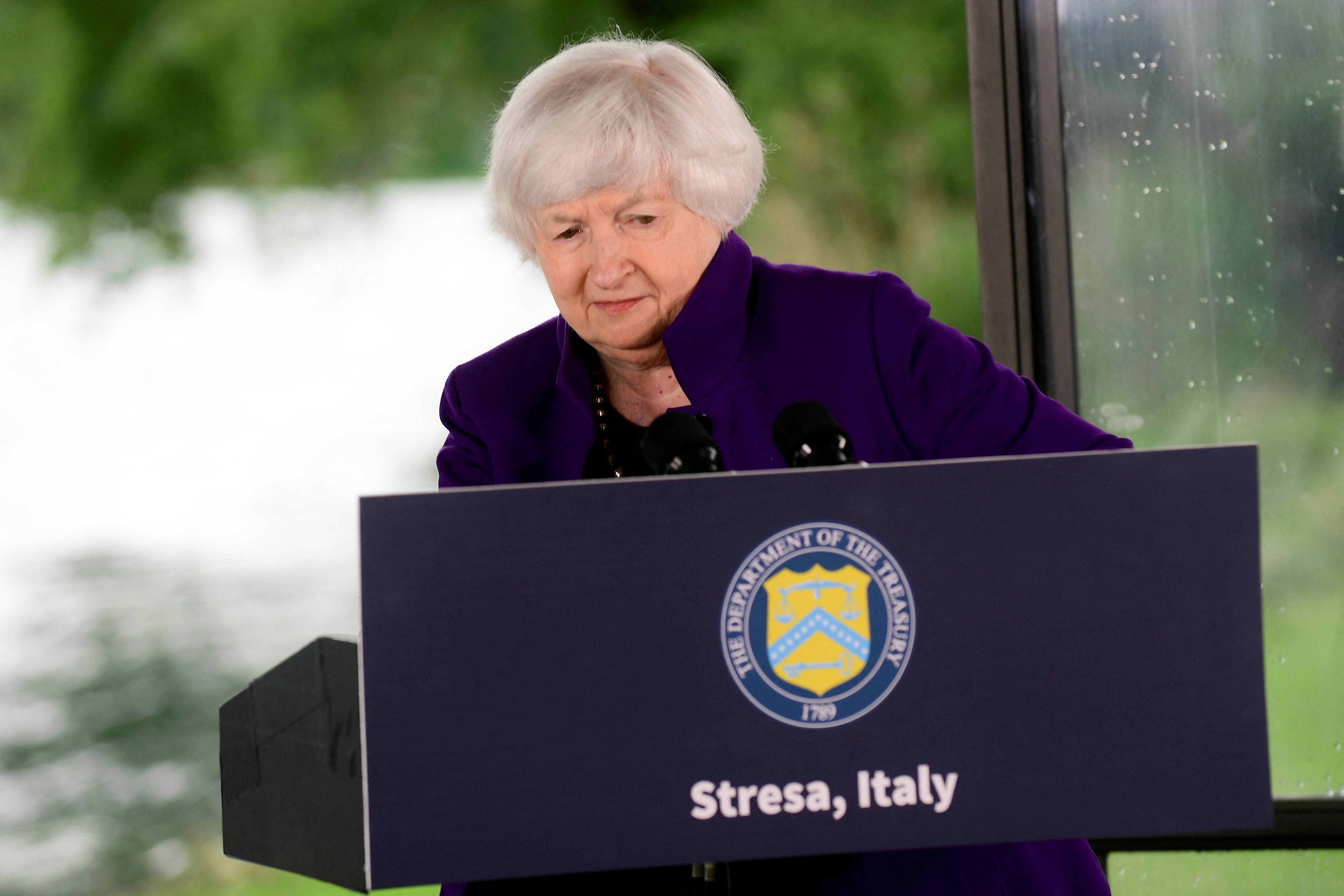 5月23日,美國財長耶倫在意大利舉行新聞發佈會/澎湃影像