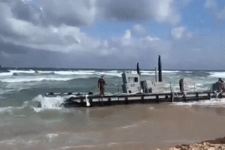 以色列第12頻道5月25日報道稱,在強烈風浪的衝擊下,這處臨時碼頭當天有部分結構脱落並漂入海中,美軍人員隨後將其拖回並重新進行了固定。