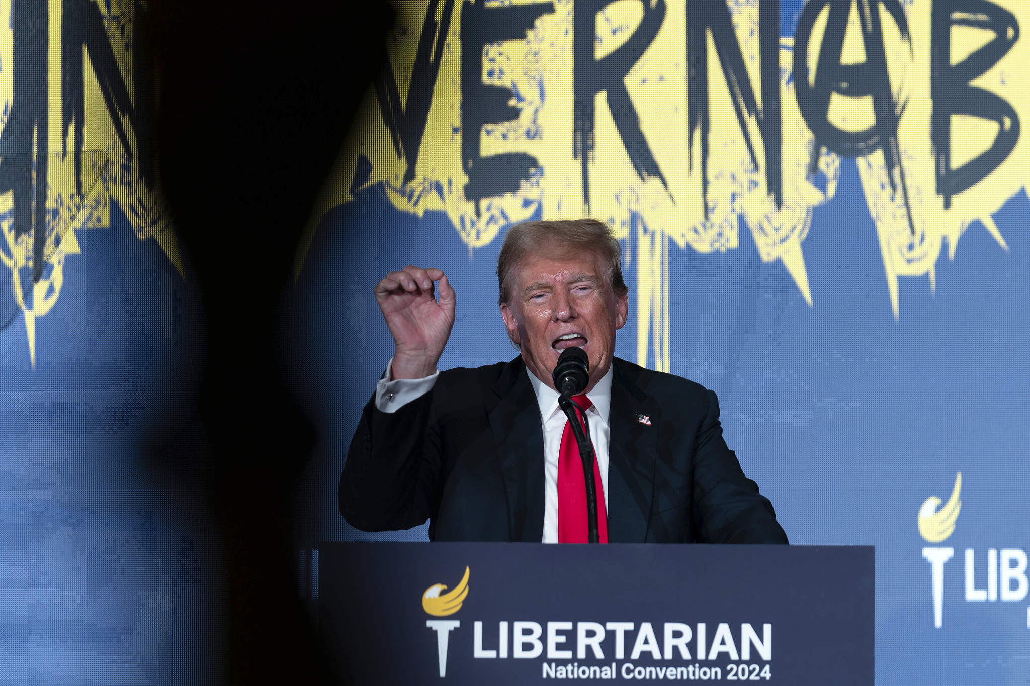 當地時間5月25日,特朗普在美國自由黨全國代表大會上發表講話 圖源:視覺中國