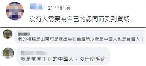 不少台灣網民支持蕭旭岑的觀點,留言稱“我們就是堂堂正正的中國人,沒毛病”。
