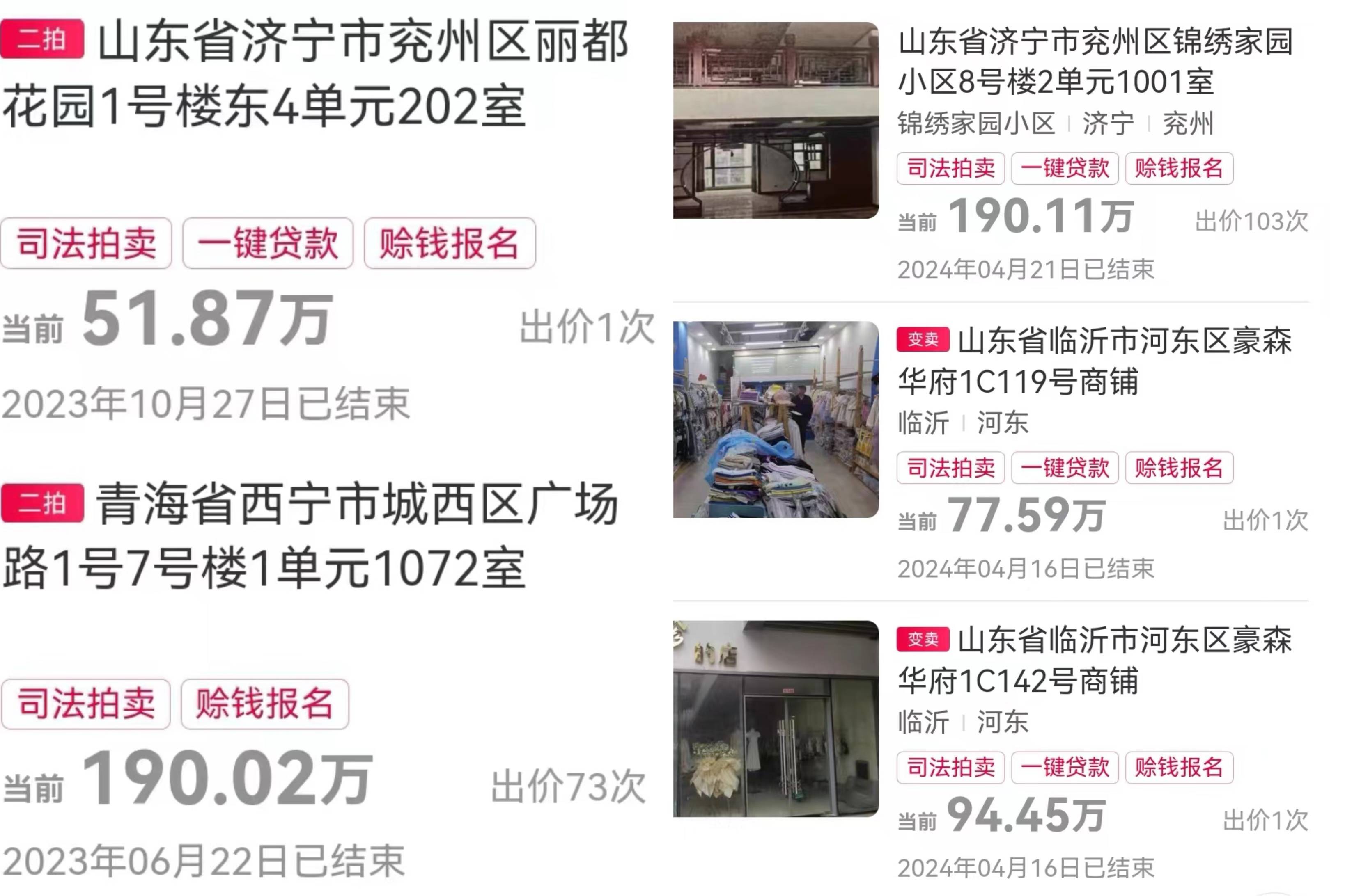 此外,張標在山東臨沂市河東區豪森華府商業街還有兩套商鋪,權屬人均為張標及其妻子魏某某。兩套商鋪評估價共計202.41萬元,一拍、二拍流拍後進入變賣程序。4月16日,魏某某作為優先購買權人(也是唯一報名參與人),出價172萬餘元將這兩套商鋪拍得。