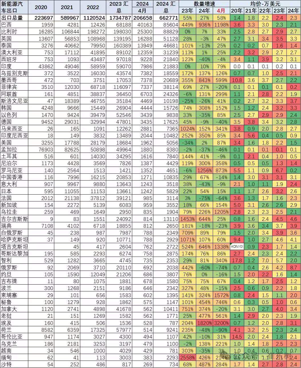 從1—4月數據看,中國新能源汽車對巴西出口總量已達到8.5萬輛,與居於首位的比利時僅差不到3000輛。