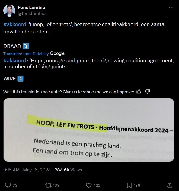 新政府的執政綱領名為“希望、勇氣和驕傲”(荷媒RTL記者X)