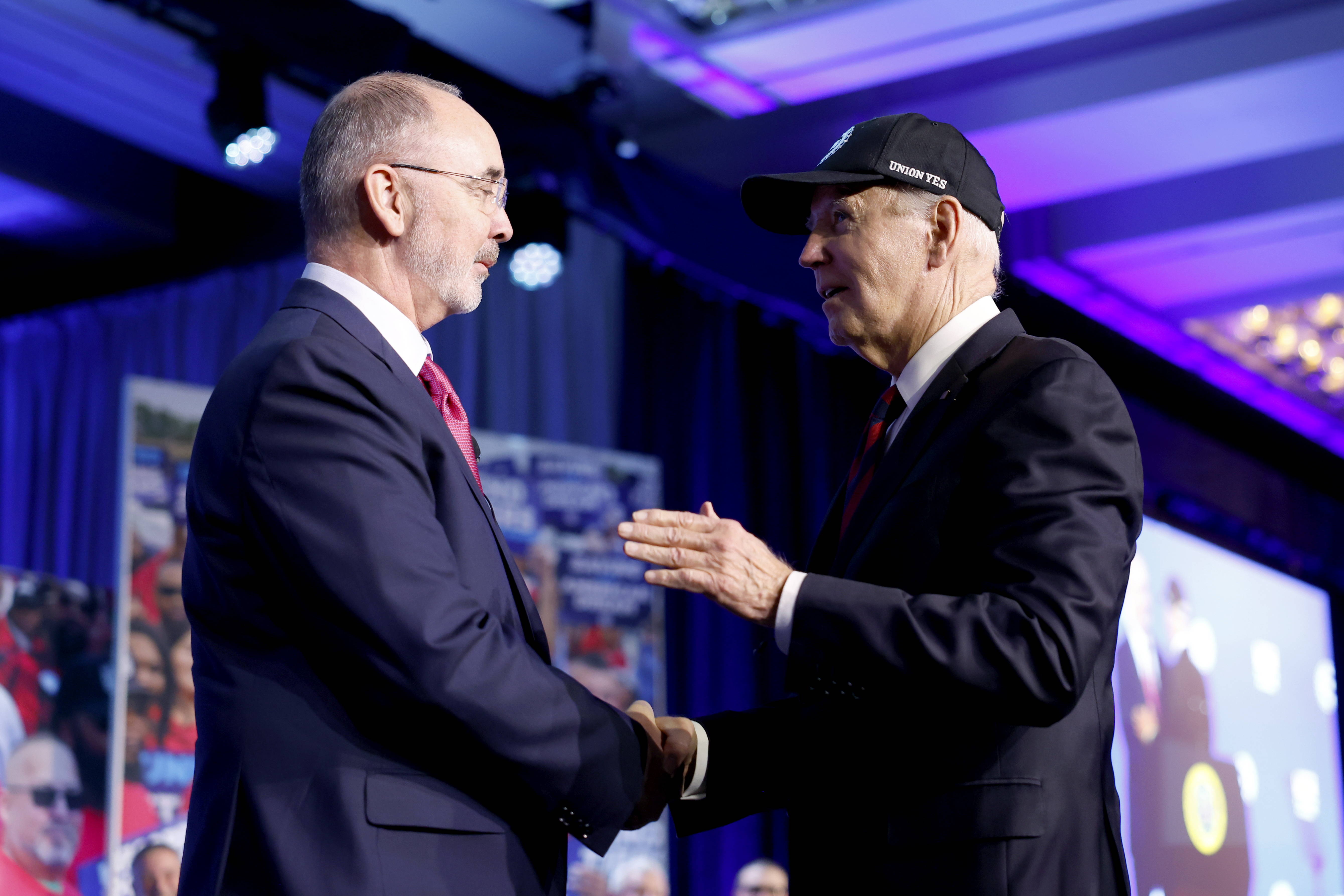 2024年1月18日,美國汽車工人聯合會(UAW)主席肖恩·費恩(Shawn Fain)宣佈,這家美國最大的汽車工人工會支持總統拜登競選連任。圖自澎湃影像