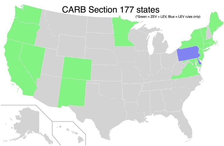 2012年,加州又制定了新的排放標準,並設定了2025年銷售的新車中零排放的電動汽車要達到15%的目標,奧巴馬政府的環保署自然也是支持的,2013年環保署即批准了其豁免申請。