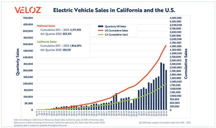 加州是推動美國電動汽車發展的棋手,2023年加州電動汽車滲透率約25%,遠高於美國平均水平(7.3%),截至2023年,加州累計銷售185萬電動汽車,約佔美國同期總銷量的40%,可見加州對於美國電動汽車發展的重要性。