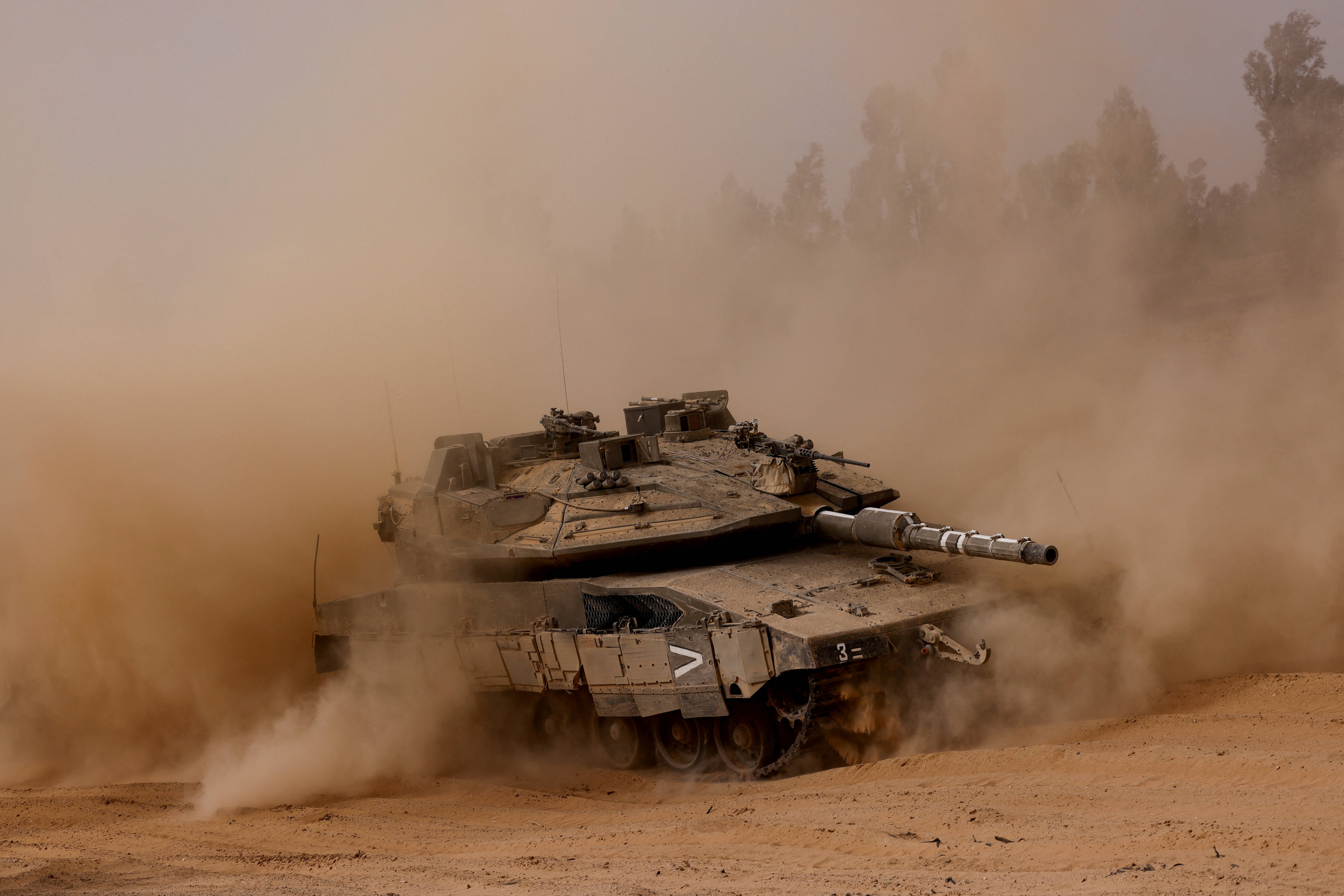 27日在以色列與加沙邊境的以軍坦克(路透社)