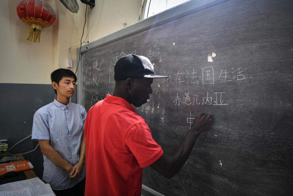 5月17日,在赤道幾內亞國立大學,當地學生在孔子學院上中文課。
