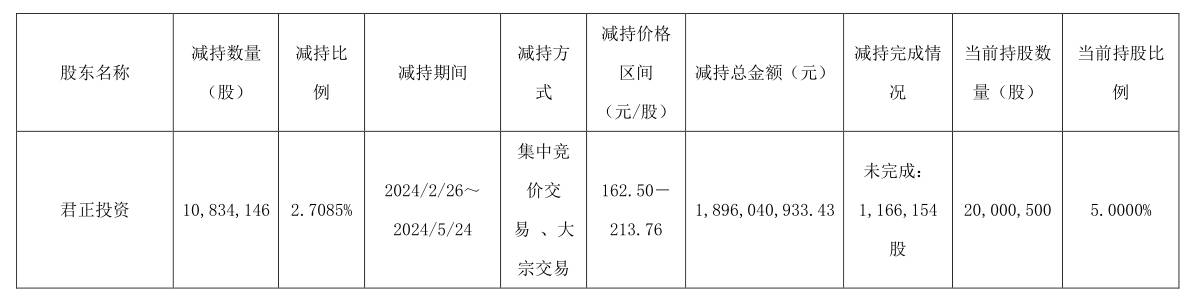 5月29日晚間,東鵬飲料發佈公告稱,公司第二大股東天津君正創業投資合夥企業(有限合夥)(下稱“君正投資”)在近3個月內,通過集中競價交易和大宗交易方式先後5次大幅減持公司股份合計1083萬股,佔公司總股本的2.7085%,套現總金額達18.96億元。
