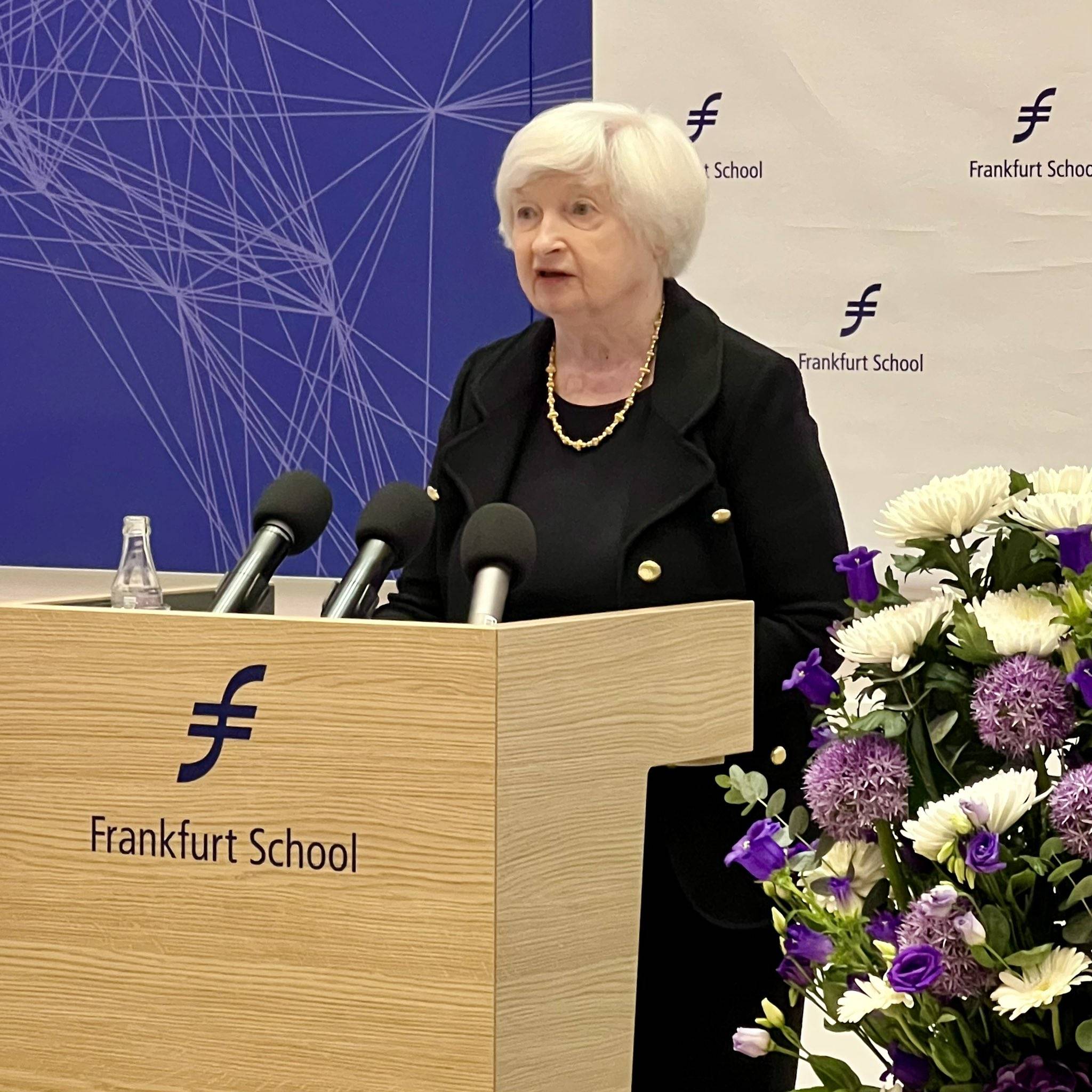 美國財政部長耶倫在德國法蘭克福訪問 圖自:耶倫的社交媒體X賬號